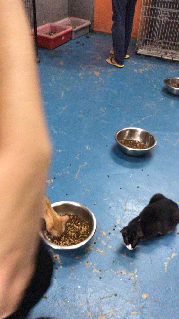 The second we arrived at the animal shelter, we were welcomed with an unpleasant smell, but that did not stopped us from continuing our volunteering service. After we settled down our things, the person in charge immediately segregated our task- Cleaning and sanitizing the cage, feeding cats, washing food bowls ; and I was in charged of setting up the cage (involved cleaning and sanitizing) and feeding the cats with Felita, my group mate.