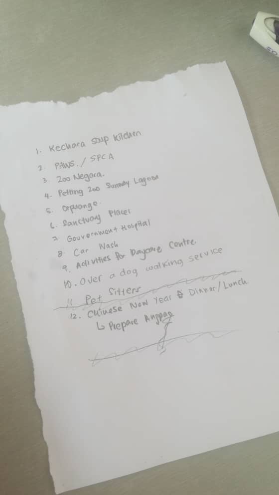 During the first week of planning ( 13 January 2020), we decided to gather up and had our first discussion together to decide on the volunteering jobs. During the discussions, we brained storm with a lot of creative and innovative ideas such as raising funds by doing car wash, visiting children in the pediatric section of the hospitals to spend time with them by bringing them some gifts and playing with them, volunteering at the soup kitchen or at the national zoo. During our second discussion ( 15 January 2020 ), a few arguments occur due to different thinking and mindset when some of the ideas were not too keen by a few of my group members because they were worried on health issues or some just wanted an easy way out of this volunteer work. When our group realized we were wasting time on choosing a spot and arguing where is the best place to do our volunteer work, we decided to come together on the 20th January to make a final decision based on democracy.